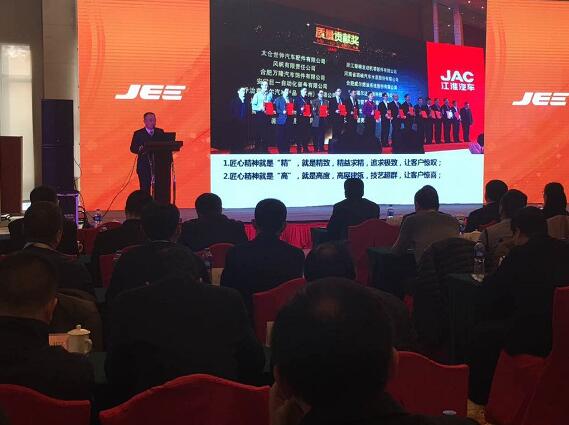 12月9日,“江淮巨一”供應(yīng)商大會(huì)圓滿落下帷幕。這是一次供需雙方交流互動(dòng)、攜手共進(jìn)的大會(huì)?!俺V莩=菘萍加邢薰尽睉?yīng)邀,派出常務(wù)副總經(jīng)理梁善標(biāo)、總工程師王凱平、市場(chǎng)部副總監(jiān)肖俊出席本屆盛會(huì),與JEE供應(yīng)商代表齊聚一堂、共融共進(jìn)。
